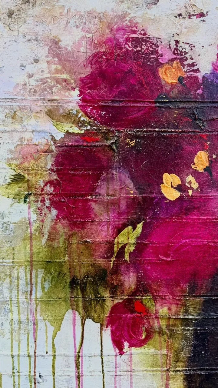 Acrylic and mixed media on vintage linen-canvas (tapestry-style)
